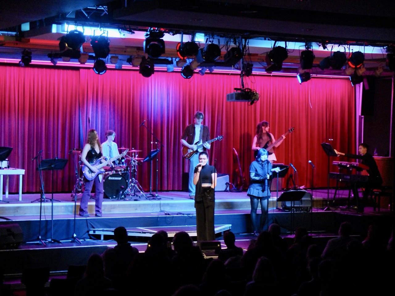 Die Schulband steht Schülerinnen und Schülern ab Jahrgang 7 offen. Herzlich willkommen sindnatürlich typische Bandinstrumente wie Schlagzeug, Bass, Gitarre und Keyboard/Klavier, aber auch Bläsern wie z. B. Trompeten und Saxophone werden immer gesucht. Gelegentlich arbeitet die Band auch mit etwas außergewöhnlicheren Bandinstrumenten wie beispielsweise Geige oder Tuba. Jede gute Band braucht natürlich auch ausdrucksstarke Sängerinnen und Sänger, sowohl als Frontman/-woman als auch als Backgroundvocals — auch die sind herzlich willkommen!