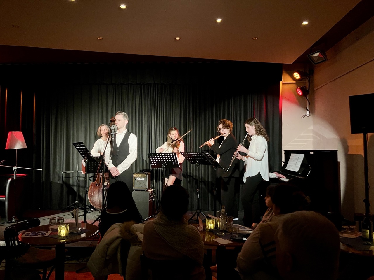 Gelegentlich braucht es die kleinen, aber feinen Besetzungen — dafür ist das Salonorchesterzuständig. Laut Duden ist ein Salon die „Zusammenkunft von besonders literarisch und künstlerisch interessierten Personen“. Das ist vielleicht etwas zu hoch gegriffen, aber im Kern stimmt es dennoch: Im Salonorchester treffen sich besonders talentierte Schülerinnen und Schüler und erarbeitet gemeinsam mit den Musiklehrkräften ein kleines, aber feines musikalisches Programm. So machen Lehrkräfte und Schüler/innen gemeinsam Musik, was für beide Seiten stets eine besondere Erfahrung ist. Das Salonorchester probt anlassbezogen, z. B. wenn es mal wieder gilt, die AG „Wortsalon“ bei der Präsentation ihrer Texte zu unterstützen.