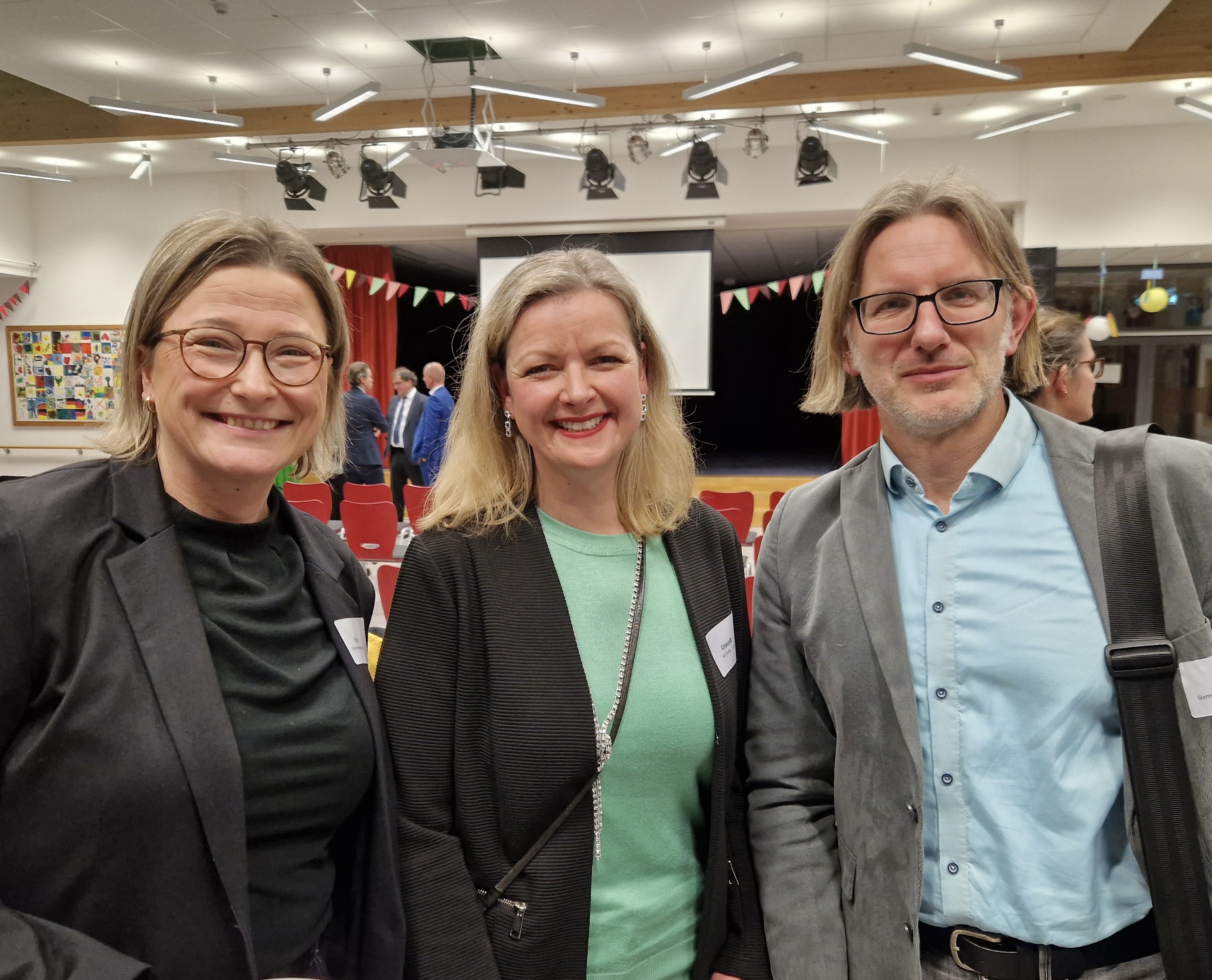 Bereits am Vorabend der Messe konnten sich Beteiligte Verantwortliche aus Wirtschaft, Verwaltung und Schule in einer Auftaktveranstaltung miteinander Austauschen: Ziel war es, die an der Qualifikation von Schülerinnen und Schülern Beteiligte aus allen Bereichen miteinander zu vernetzen. Vom Ernestinum waren Frau Kranz und Herr Wessel mit von der Partie, hier zusammen mit Frau Crocoll, die für das Ernestinum verantwortliche Berufsberaterin von der Agentur für Arbeit.
