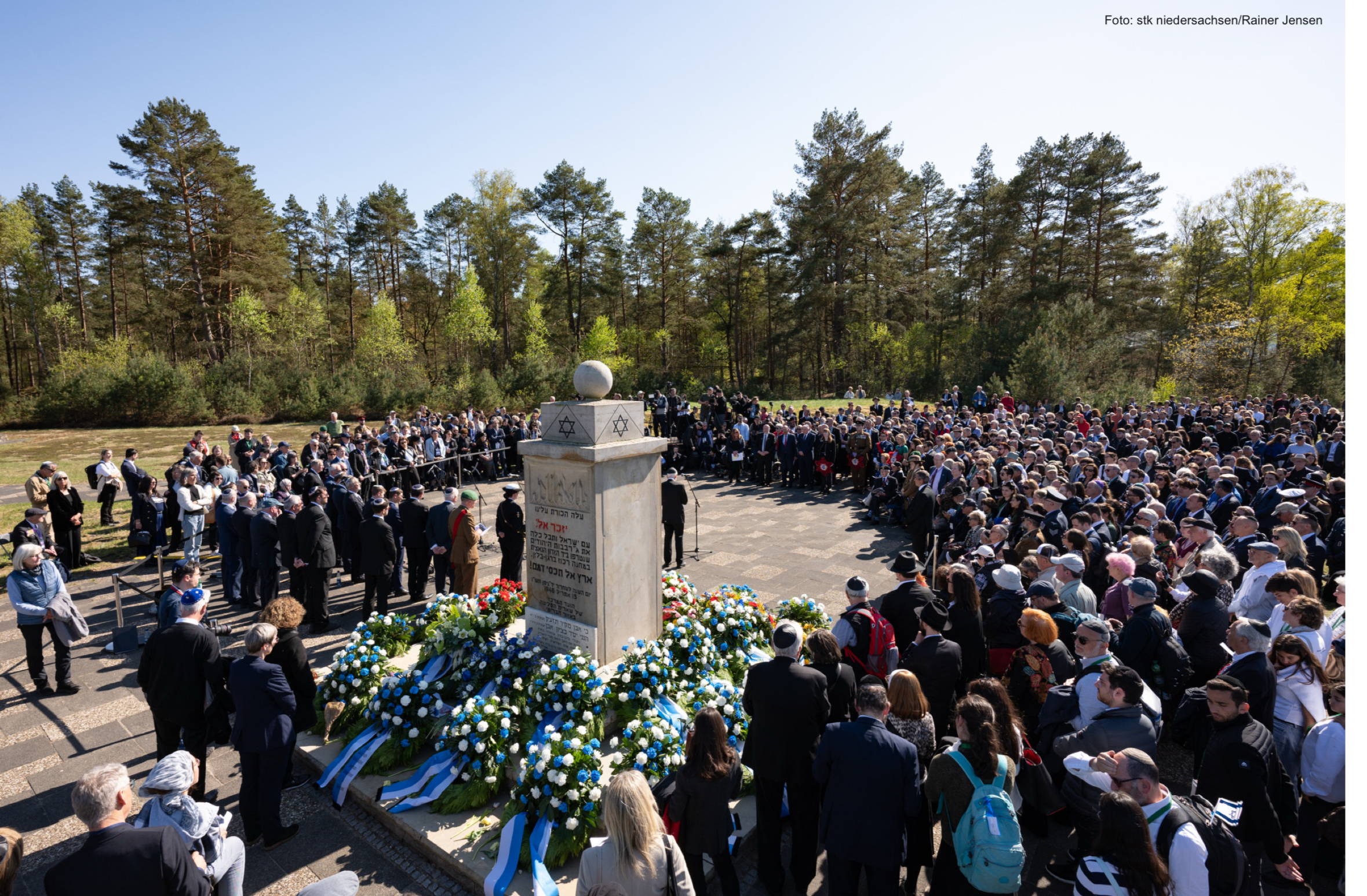 Frau Barking beging diesen wichtigen Anlass mit Schülerinnen und Schülern des zehnten und zwölften Jahrgangs in Bergen-Belsen. Bei der zentralen Gedenkveranstaltung am 27. April durften diese zuhören, was überlebende Zeitzeugen ihnen und uns mit auf den Weg geben, es gab Gespräche mit Überlebenden und mit Mitgliedern der britischen Streitkräfte. Die Schülerinnen und Schüler durften gemeinsam mit den Ehrengästen Kränze niederlegen, als Symbol der Erinnerung und des Mahnens – Nie wieder!