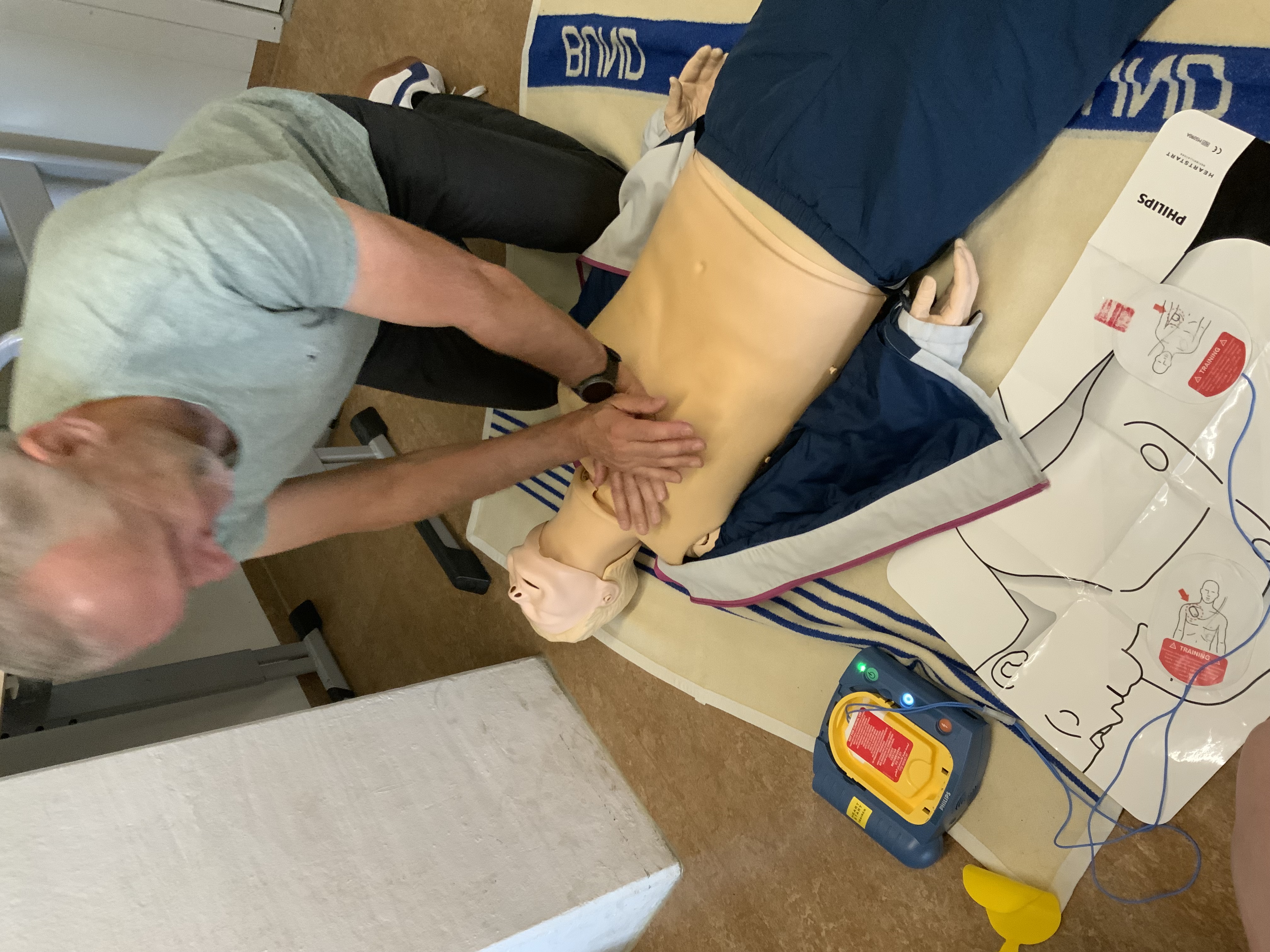 Neben der Klärung vieler Fragen zu - insbesondere im Schulalltag vorkommenden - Ersthelfersituationen wurde auch die Reanimation an Puppen sowie mit Hilfe der AED praktisch geübt.