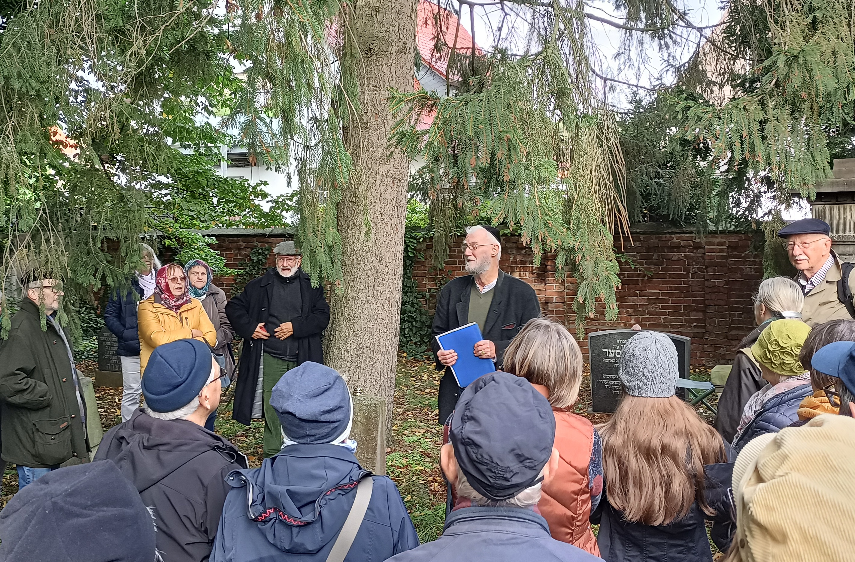 Mit der Verlesung des Qaddischs, des Friedensgebets für die Verstorbenen, auf Hebräisch und Deutsch schloss Dobberahn die fast zweistündige Führung, die trotz durchwachsenen Wetters bis zum Ende gut besucht war.