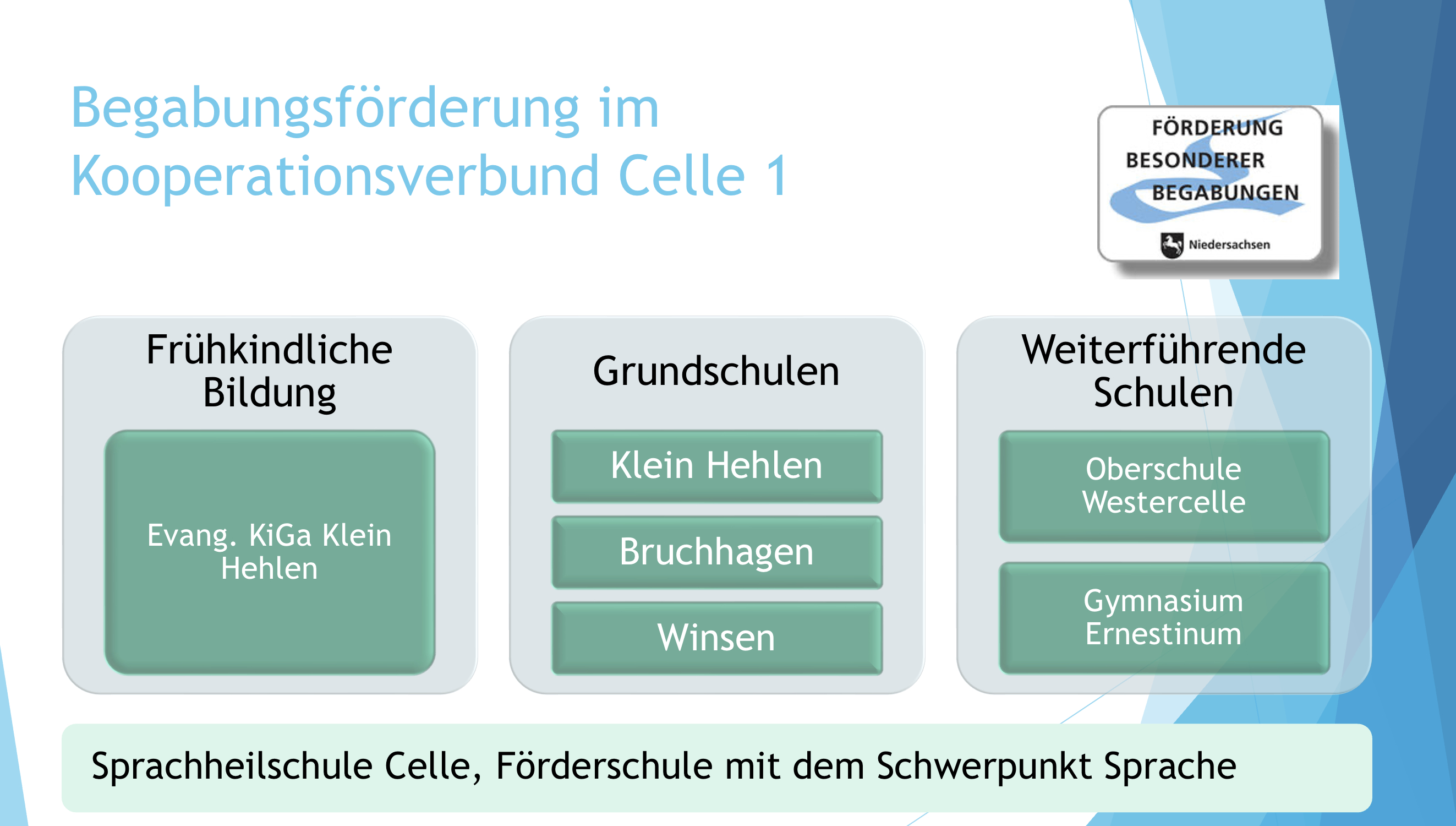 Der Kooperationsverbund Celle 1 besteht zwischen der Evang. Kita Klein Hehlen, der Sprachheilschule Celle, welche eine Förderschule mit dem Schwerpunkt Sprache ist, den Grundschulen Klein Hehlen, Bruchhagen, Winsen, der Oberschule Westercelle und dem Gymnasium Ernestinum.
