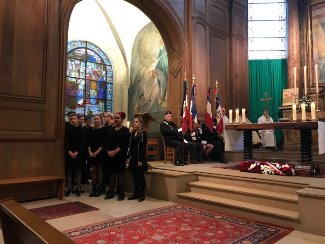 Nach der Messe schlossen wir uns einer Prozession der Stadt zu den Gräbern der vierhundert gefallenen Soldaten der Stadt Meudon an. Trotz des Regens war es uns eine große Ehre, teilnehmen zu dürfen.