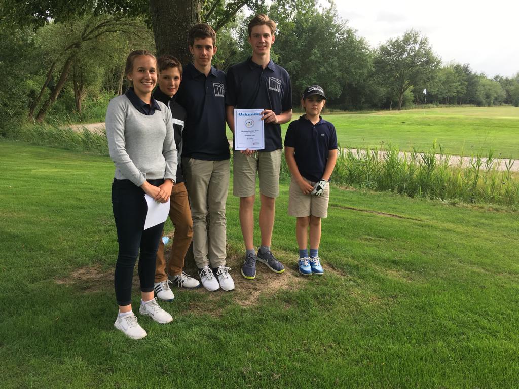 Alle vier spielten bei sehr guten Platzbedingungen hervorragendes Golf. Besonders hilfreich für die Mannschaft war die sehr gute Leistung von Janis Brandis, der an diesem Tag von allen Teilnehmern das beste Netto-Ergebnis erreichte und so sein HCP von 54 auf 38 verbesserte. Sophia überzeugte mit ihren beeindruckenden langen Schlägen, aber hatte manchmal Pech mit ihren Putts. Als erfolgreichste Spielerin unserer Mannschaft trug sie 21 Brutto-Punkte von den insgesamt 40 erspielten Brutto-Mannschaftspunkten bei. Luis und Sören spielten zuverlässig ihr Können entsprechend ihrem Handicaps aus und so konnte ein respektabler Vorsprung von 13 Brutto-Punkten gegenüber dem Achtplatzierten, dem Ratsgymnasium Goslar, herausgespielt werden. Das vor uns platzierte Gymnasium Burgdorf erspielte 44 Brutto-Punkte.